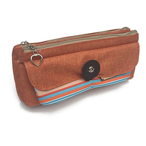 APITA 1 Pcs Novelty Kawaii Stationary Office Material Double Deck Large Pencil Bag (Orange)