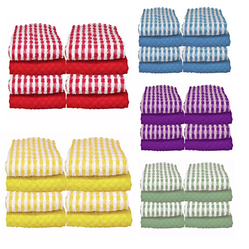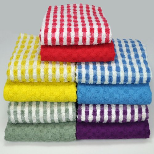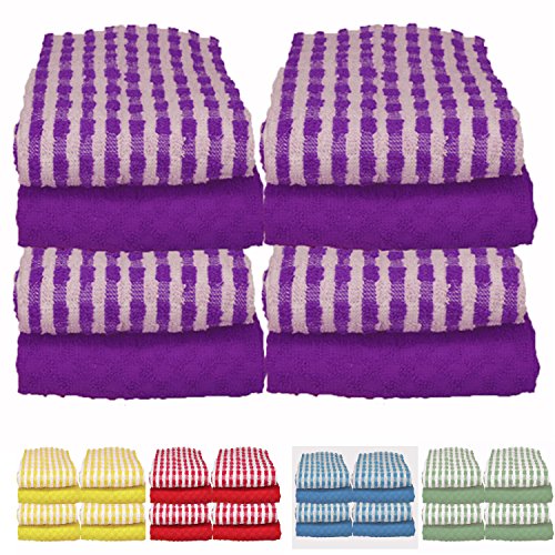 Weavely Solid and Dobby Style Checkered Pattern Terry Waffle Weave Cotton Towels, 26-Inch-by-16-Inch, Set of 8, Purple