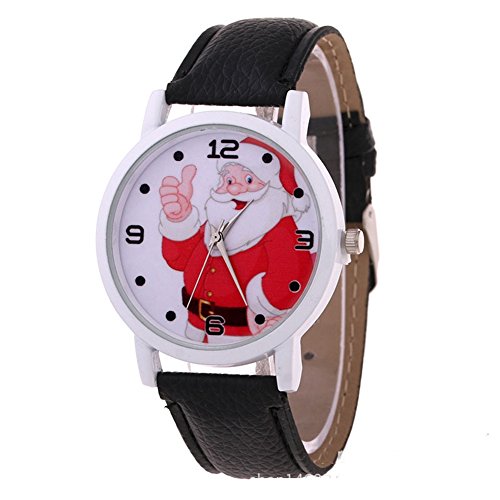 -. Title : LinTimes Artificial Leather Christmas Father Santa Claus Quartz Wrist Watch for Women Kids Boys Girls Black