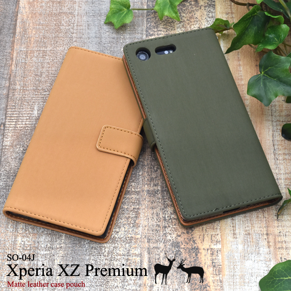 マットな質感のレザーを使用した、Xperia XZ Premium SO-04J用マットレザーケースポーチ。
