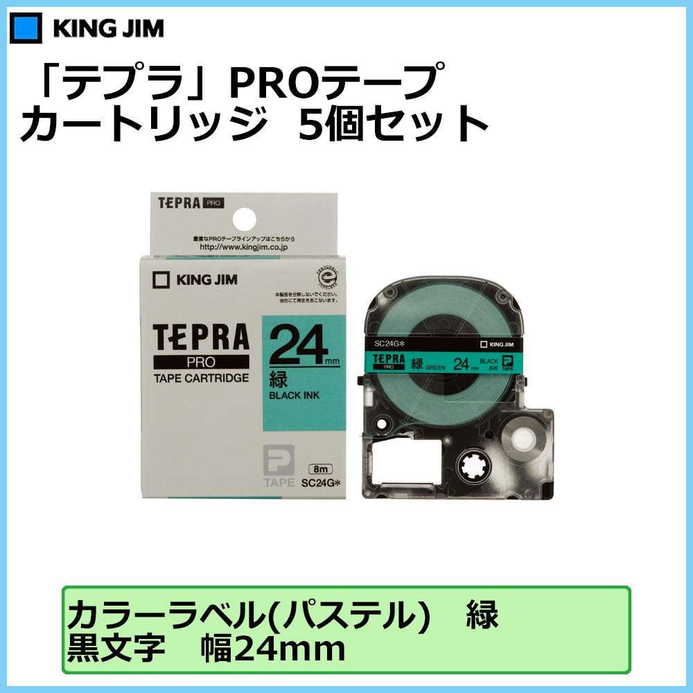 「テプラ」PROシリーズ専用のカートリッジです。カラーラベルなので使い分けに便利です。 製造国:日本 素材・材質:ABS 商品サイズ:1個あたり:テープ幅24mm・長さ8m 仕様:テープ色:緑(黒文字)取扱説明書(パッケージに記載) セット内容:5個セット ※サプライヤー直送品 ご注文後3~4営業日後の出荷となります【商品名】KING JIM(キングジム) 「テプラ」PROテープカートリッジ カラーラベル(パステル) 緑/黒文字 幅24mm SC24G 5個セット