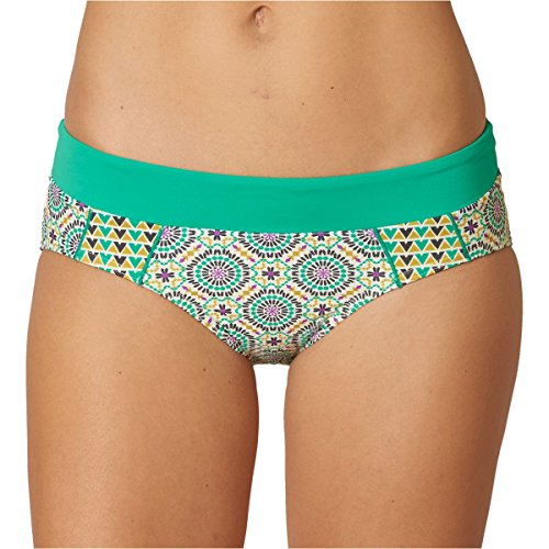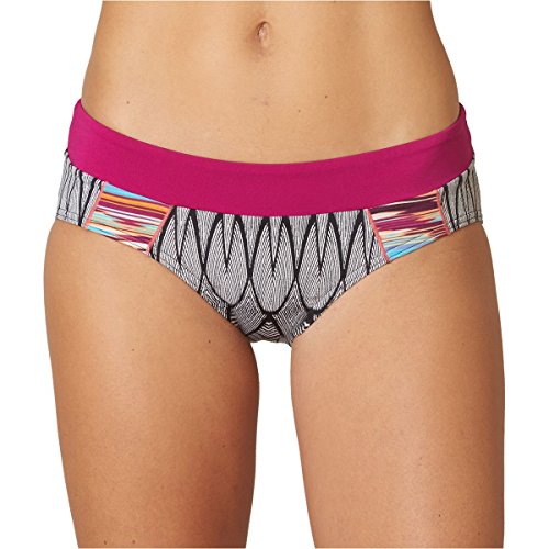The wide waistband of the prAna Zuri Bottom combines with a mid rise to create a flattering fit with full seat coverage. Tribal artwork creates colorful active prints.