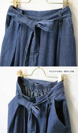 同生地のウエストベルトはリボンに結んだり