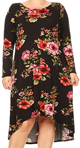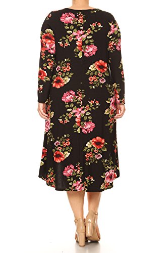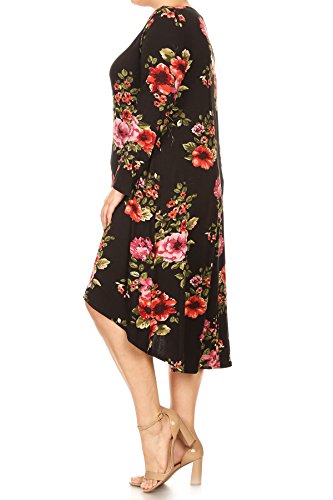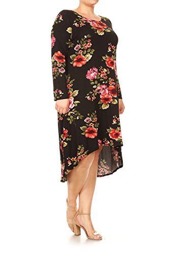 BNY Corner Women Plus Size Long Sleeve Floral High Low Midi Length Casual Dress Black 2XL (D524 FLO)