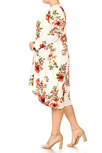 BNY Corner Women Plus Size Long Sleeve Floral High Low Midi Length Casual Dress Ivory 2XL (D524 FLO)