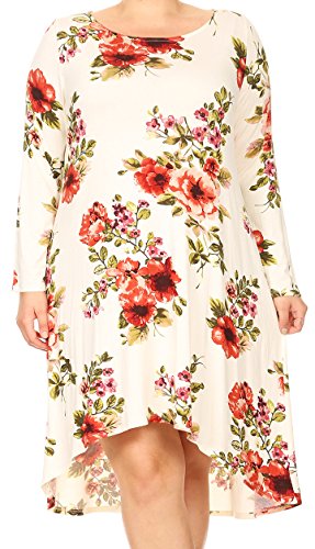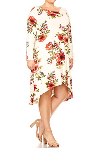 BNY Corner Women Plus Size Long Sleeve Floral High Low Midi Length Casual Dress Ivory XL (D524 FLO)
