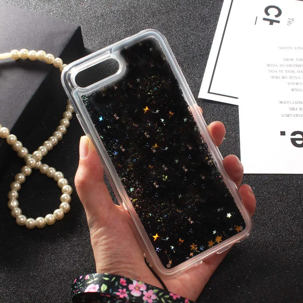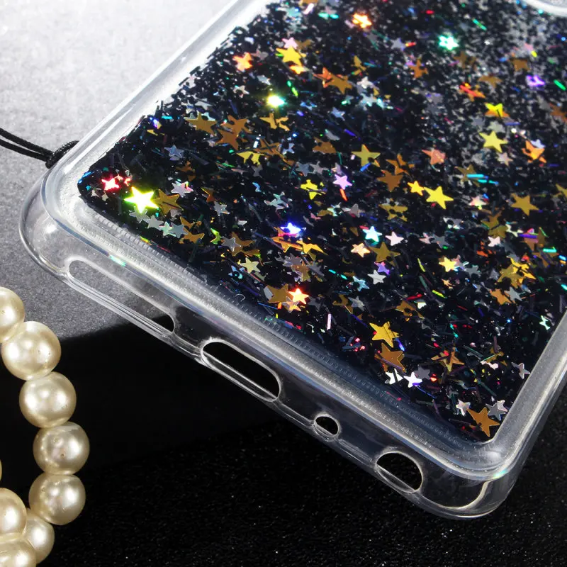 Features:Luxury Liquid Glitter Love Star Silicone Soft TPU