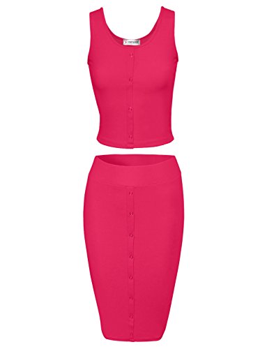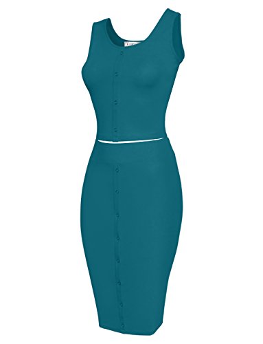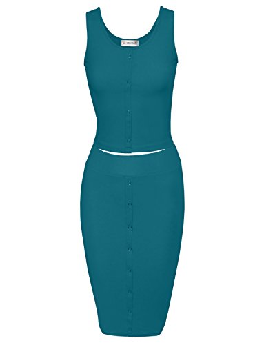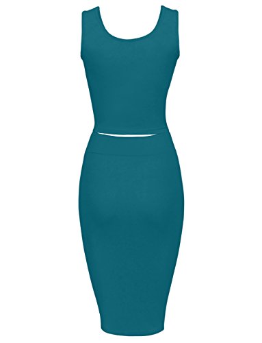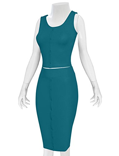 "Be glamourous and Chic with our newest design dress. Wear the sleeveless scoop neck top and curve-hugging midi skirt together as a dress or separately for a hit of on-trend color.