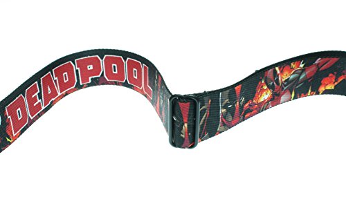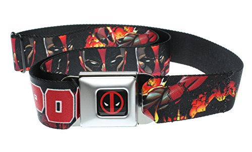 Marvel Deadpool Seatbelt Belt - Wade Wilson Hero Repeating Face w/ Building Fire