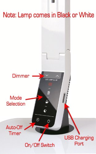 Softech - Natural Light Smart LED Lamp with Dimmable light-Black (4 Lighting Modes, 5-Level Dimmer, Touch-Sensitive Control Panel, Auto Timer, USB Charging Port, Mobile Device Charger)