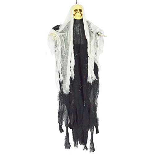 Includes one 35 inch hanging ghost skeleton, and two 25 inch hanging reapers