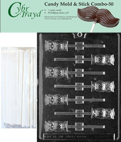 Cybrtrayd 45St50-H034 Owl Lolly Chocolate Candy Mold with 50 Cybrtrayd 4.5" Lollipop Sticks