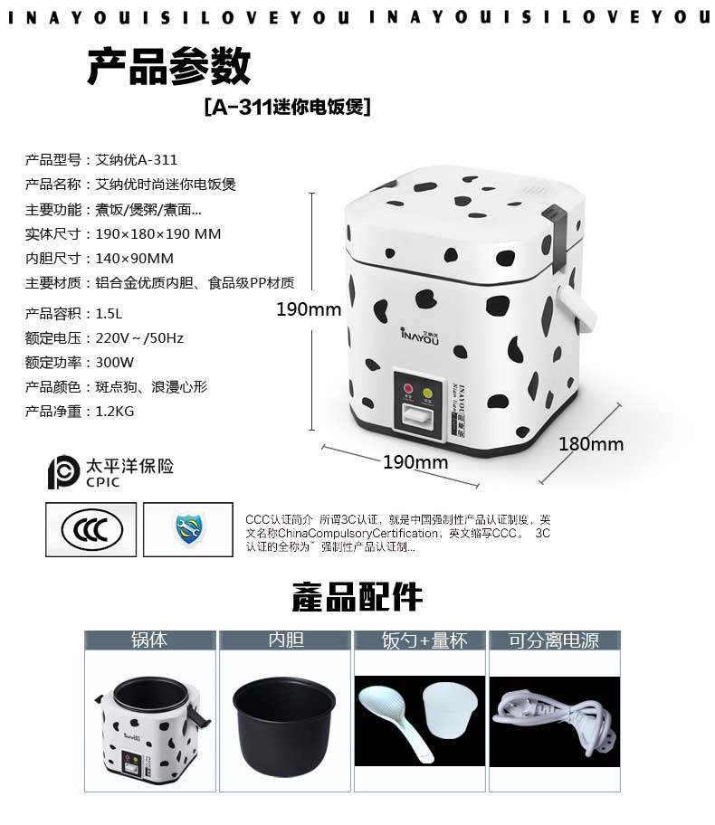 Inayou power electric rice cooker mini rice cooker small mini rice cooker
