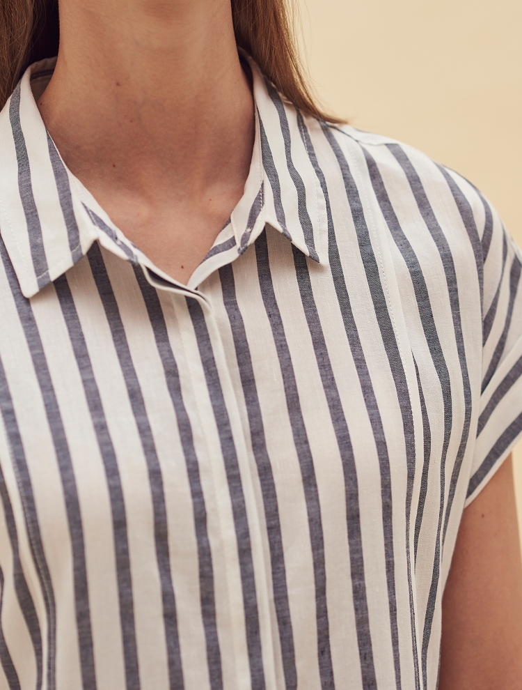 - 코튼과 리넨 혼방 소재로 시원하게 착용 가능한 롱기장의 셔츠형 원피스입니다.