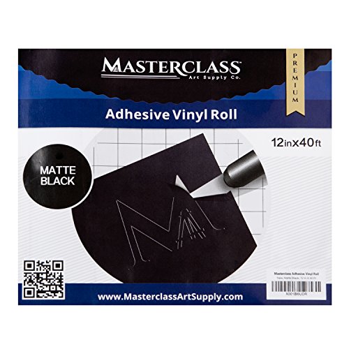 Premium Adhesive Vinyl By Masterclass | Matte Black | 12 Inches x 40 Feet Roll | Bulk Size Great for Crafters | Great for Wall and Car Decals | Compatible With Electronic Cutting Machines
