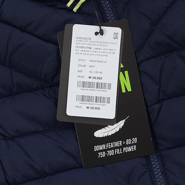 제품소재 : 폴리에스터100%충전재:오리솜털80%깃털20%