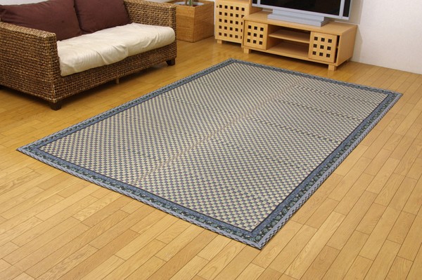 【商品名】純国産/日本製 イ草花ござカーペット 『かれん』 ブルー 江戸間3畳(約174×261cm)
