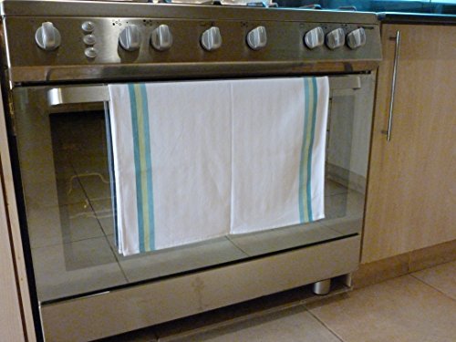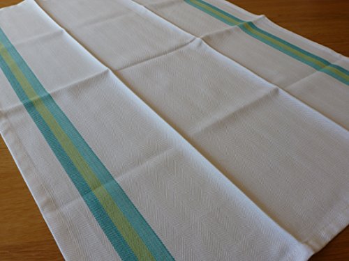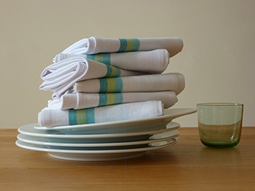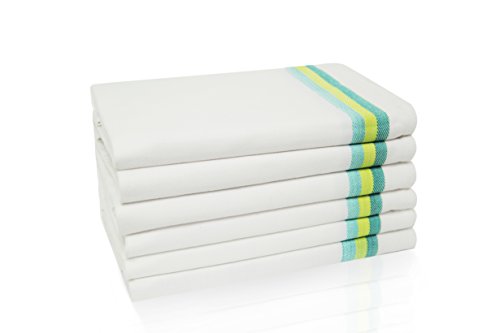 Kitchen Dish Towels set of 6 - Tea Towels by Harringdons, 100% cotton. LARGE Dish Cloths 28"x20" soft and absorbent. White with green stripes. Add beauty to kitchen life.