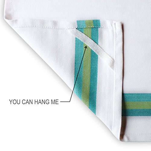 HANGING LOOP for easier hanging. Each towel comes with a corner hanging loop. Add color to your home - enjoy tones of green stripes in one value pack of 6.