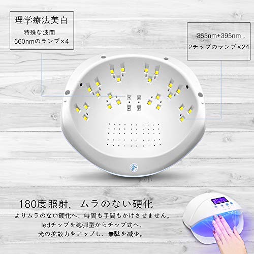 【快速硬化 ,貴重な時間を節約する】従来品の6面照射から180度照射へ、よりムラのない硬化へ、時間も手間もかけさせません。伝統的なuvライト ネイルと比べて半分の時間を减少する。