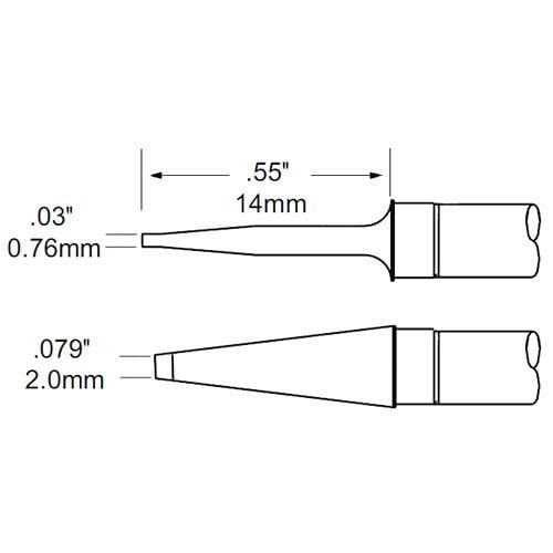 Metcal TFP-BLP2 Series TxP Tweezer Cartridge for Most Standard Applications, 790°F Maximum Tip Temperature, Blade, 2mm Tip Size, 14mm Tip Length