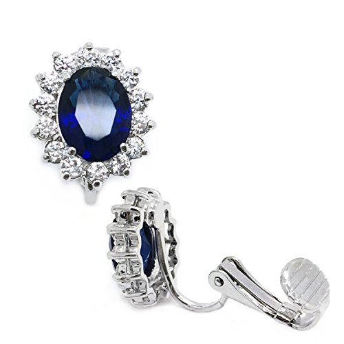 These delicate bridal earrings are made of rhodium plated brass and are set with sparkling cubic zirconia stones. A rich deep sapphire color blue oval CZ acts as the centerpiece for each of the earrings. A clip on backing ensures these earrings can be worn by you or your bridesmaids regardless if your ears are pierced or not. The perfect "something blue" for your wedding day. These lovely earrings will make the perfect choice for your special someone for Valentine's gift, Christmas gift, Mothers day gift, Birthday gift, Anniversary Gift, or Bridal party gifts.Feature