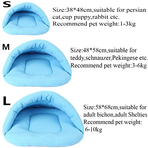 -. Feature : Sleeping cave bag for small&medium cats,small size dogs and other small size pets / Size S:38*48cm,suitable for persian cat,cup puppy,rabbit etc. Recommend pet weight:1-3kg / Size M:48*58cm,suitable for teddy,schnauzer,Pekingese etc. Recommend pet weight:3-6kg / Size L:58*68cm,suitable for adult bichon,adult Shelties ,etc.Recommend pet weight: 6-10kg / Please note the size description before place an order for choosing approP.R.Iate size