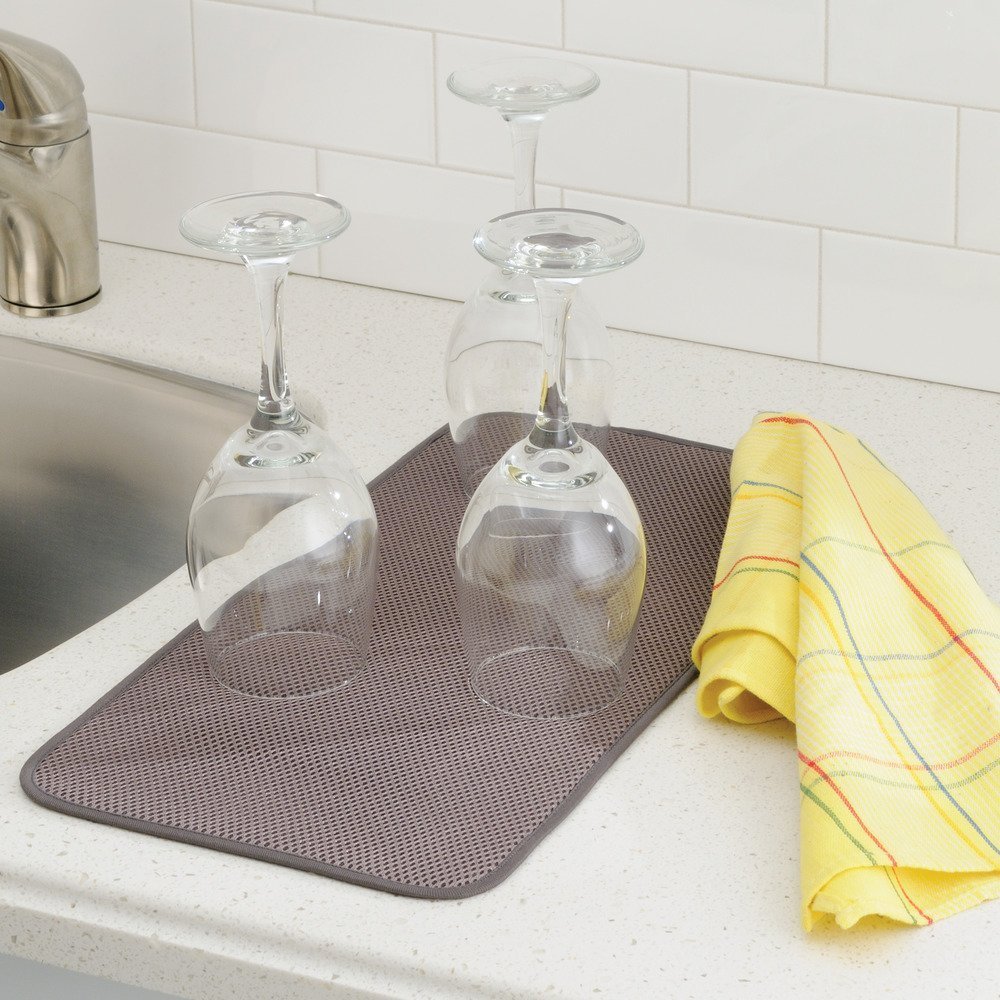 InterDesign iDry Mini Absorbent Kitchen Countertop Dish Drying Mat - Mocha/Ivory
