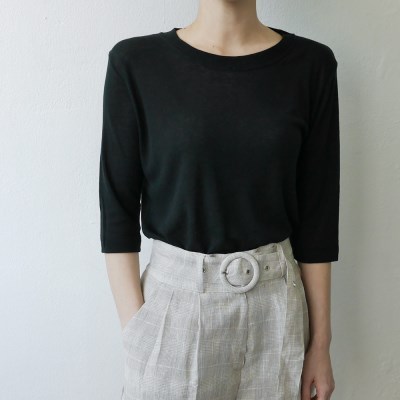 텐셀 혼방소재로 슬림한 라인의 5부 티셔츠 소개해드려요. 반팔보다 소매가 약간 긴 느낌으로 팔뚝을 다 덮어주어 체형커버하기 더 좋은 아이템이구요. 단독 착용도 예쁘고 슬리브리스원피스나 자켓속 이너로 활용하시기에도 좋은 아이템입니다. 하늘하늘거리는 원단으로 몸에 흐르듯이 핏되어 더욱 매력적이예요. 모델은 블랙 착용하였습니다. MODEL / 166m , 55size , S or 26 , SHOES_240 아이보리,화이트 컬러는 교환, 환불 불가하오니 신중한 구매 부탁드려요.