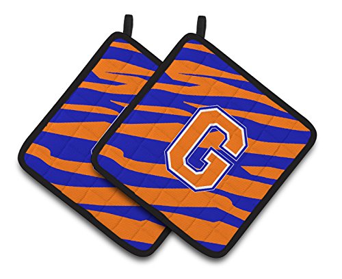Caroline's Treasures Monogram Initial G Tiger Stripe - Blue Orange Pair of Pot Holders CJ1023-GPTHD, 7.5HX7.5W, Multicolor
