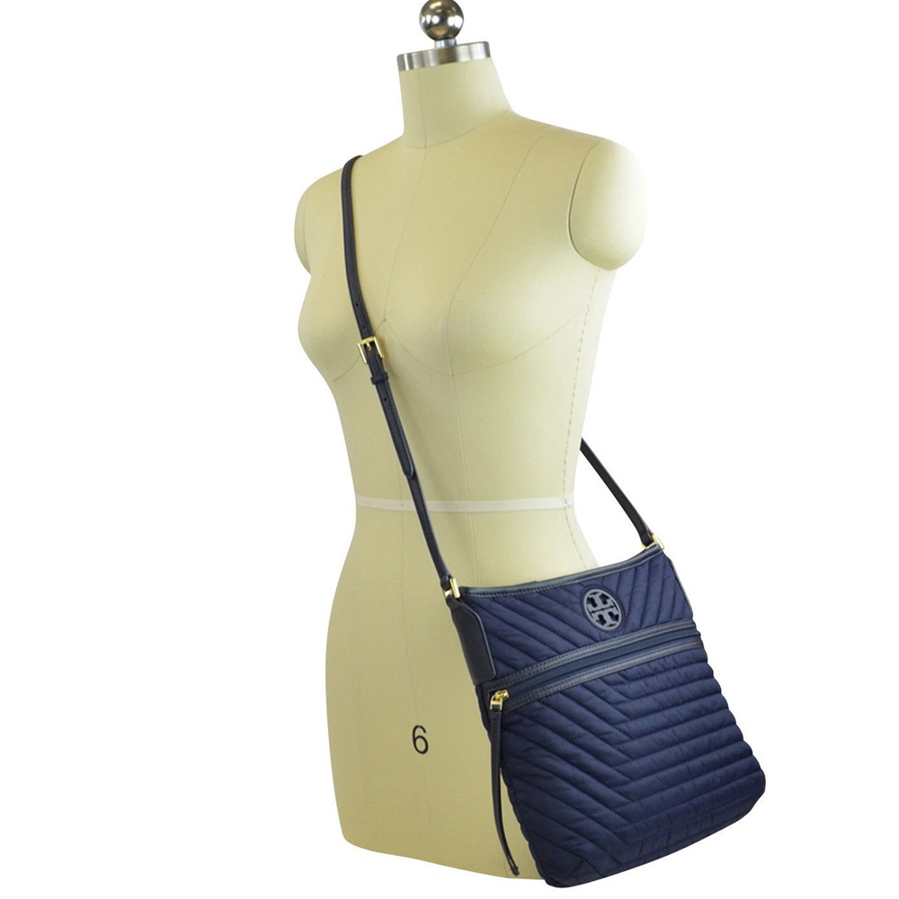 ■商品名トリーバーチ バッグ ショルダーバッグ Tory Burch Quilted Nylon Swingpack NAVY■仕様:ファスナー開閉式内側:ファスナー式ポケット×1 スライドポケット×2 スナップ式スライドポケット×1外側:ファスナー式ポケット×1■カラー:NAVY(ネイビー) ■サイズ:高さ25cm×幅25~30cm×マチ8cm ショルダーストラップの高さ48~60cm ■素材:ナイロン