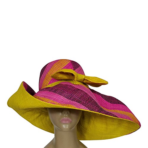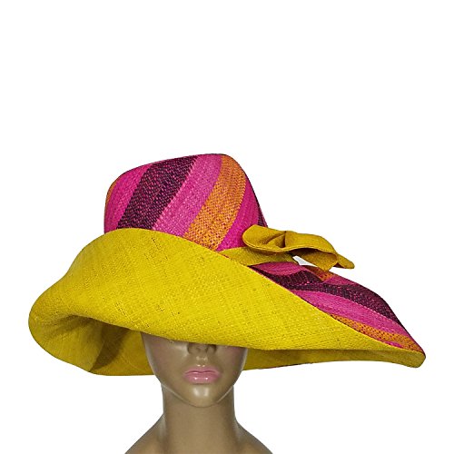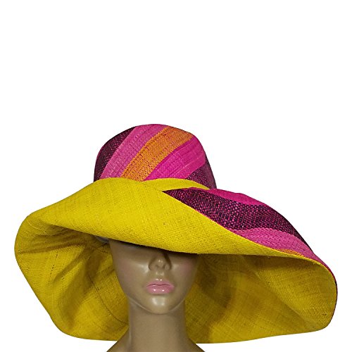 Binding : Apparel Product Description A beautiful shape-able lightweight multi-colored hat (pink, yellow, black and orange) featuring a 7-inch brim that we weave by hand in Madagascar. Its shape-able brim allows the owner to wear the hat in many different styles. This hat is an eco-friendly product crafted from natural Raffia and other renewable and sustainable raw materials utilizing a variety of energy saving techniques. It contains a comfortable cotton lining and is adjustable with a drawstring interior. All of the colorings on this hat was done using a long-lasting vegetable-based dye. Its dual layer of fine woven Raffia allows the hat to offer UPF 50 /SPF 30 sun protection which makes it a great hat for when you will be outdoors for an extended period of time. Our big brim Madagascar raffia hats are pack-able and are rolled easily for traveling. Spot clean the hat with cold water when needed, do not use any soap or detergent.