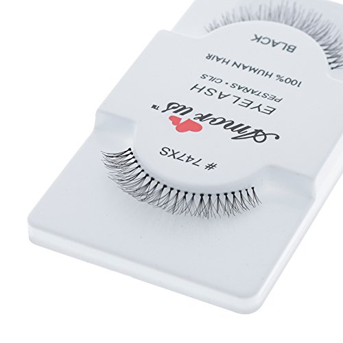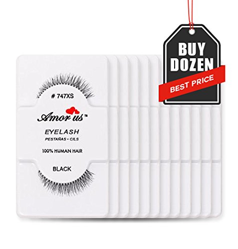 Amorus 12 Pairs Multipack #747XS False Eyelashes Dozen Set 100% Natural Hair Black Handmade Comfortable Reusable Fake Lashes Pack