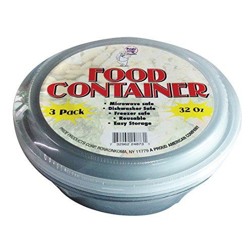 FPI - 3 Round Food Storage Containers with Lids - Microwaveable & Dishwasher safe (32 Ounce)