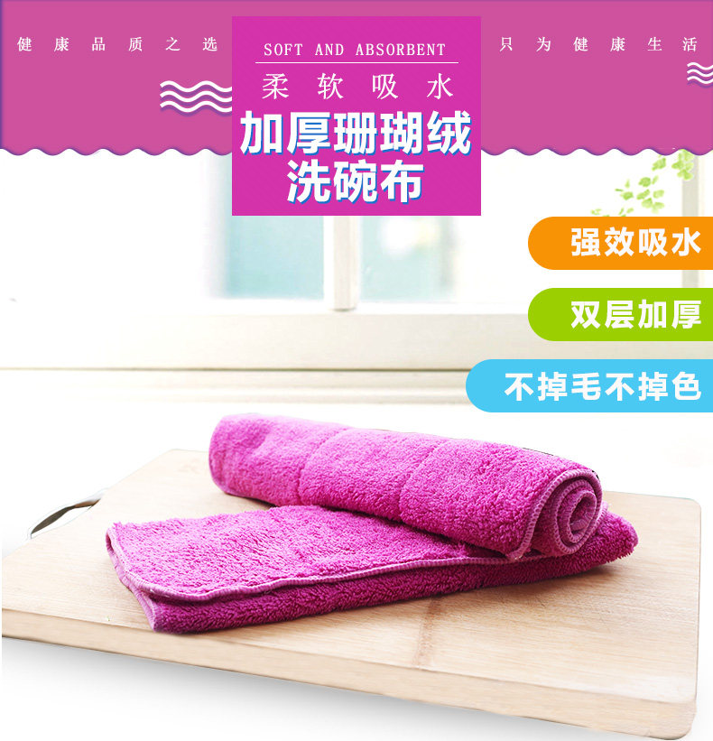 珊瑚绒洗碗布地板擦地抹布吸水不掉毛加厚厨房洗碗布3条装5条装