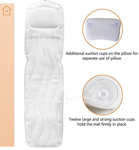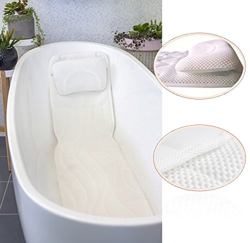 EXTRA LONG FULL BODY BATH MAT & PILLOW: This new bath mat offers 10 inches longer length so just lie on this Thick and comfortable spa cushion and enjoy your bath time