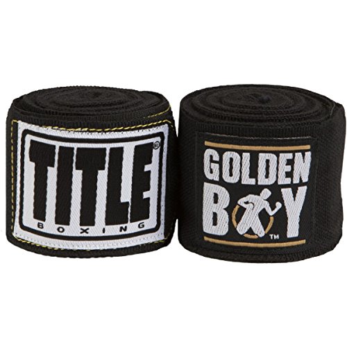 -. Binding : Misc. -. Brand : Title Boxing -. Feature : Constructed with a spandex and polyester blend / Convenient thumb loop and hook-and-loop closure / Sold in pairs / Size: 2" x 180" -. Label : TITLE Boxing -. Manufacturer : TITLE Boxing -. MPN : 116114 -. PartNumber : 116114 -. ProductGroup : Sports -. ProductTypeName : SPORTING_GOODS -. Publisher : TITLE Boxing -. Studio : TITLE Boxing -. Title : Golden Boy Elite Stretch Hand Wraps, Black