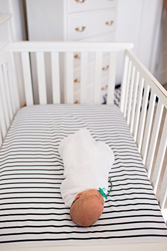 -. Title : Premium Fitted Cotton Crib Sheet / Toddler Sheet "City" Black and White Stripes by Copper Pearl