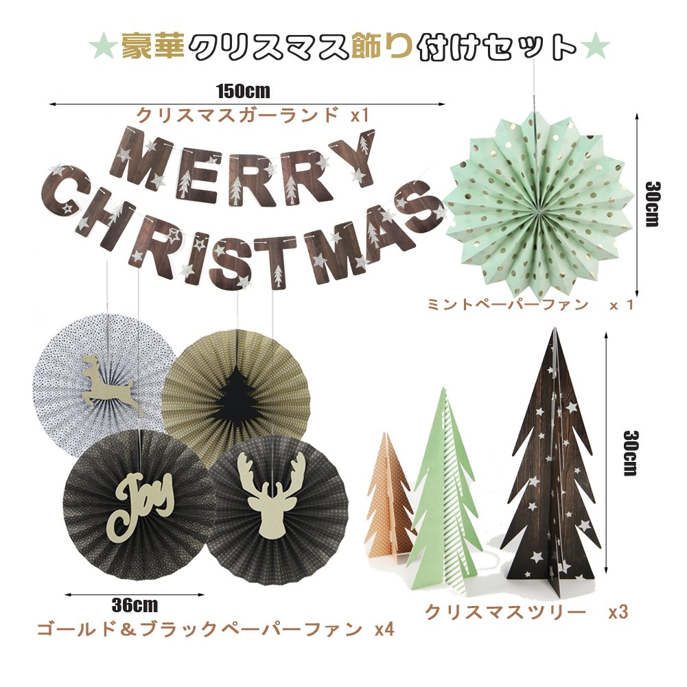 北欧風のクリスマス飾りセットです。エレガントでクリスマスパーティーに高級感を増やします!! セット内容:1x 木目ペーパーガーランド、5x クリスマステーマのペーパーファン、3x クリスマスツリー。 素材:高品質のペーパー、使用中、ラメが絶対落ちません!  特製の紙ですので、ラメがお子様に誤って食べられることや、地面と壁を汚れることなどのご心配はありません! 適用場合:クリスマスパーティー、クリスマスイヴ、遊芸会、ホームパーティー、店の飾り、写真の背景など
