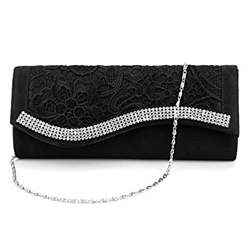 -. Feature : 大人女子の為のパーティーバッグ☆なめらかなサテン生地に、贅沢なレースとビジューが、アクセントに。高級感のあるエレガントな大人の女性を演出します。 / シーンによってドレスは変わる・・・でもバッグもその度に変えるのはちょっと大変・・・そんな貴方にピッタリ☆シーンを選ばず、どんなドレスにも合わせやすい、主張しすぎない優秀デザイン♪ / ご祝儀袋、ミニ財布、スマホ、コスメなどの必需品をしっかり収納する便利な大きめサイズです。嬉しい内ポケット付きなので、収納機能も抜群♪ヘアピンや絆創膏など、ちょっとした小物も収納美人 / シルバーチェーン付きなので、ハンドバック・クラッチバックとシーンや用途に合わせて印象チェンジも☆また、マグネットボタンなので、携帯やハンカチもすぐに取り出せます。 / カラーはブラック・シルバー・シャンパンゴールド・ホワイトの四色展開。★送料無料!Amazonより即日発送!☆