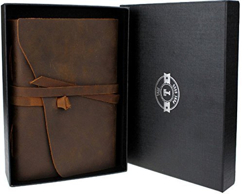 LEATHER JOURNAL Handmade Vintage Notebook 7 X 5 inch Bound Unlined Paper Travel Diary Gift for Men & Women in GIFT BOX + with 20% MORE PAGES than most plus NAME & DATE PAGE, DAILY PROMPTS E-GUIDE