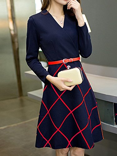 -. Feature : シンプルなネイビーの長袖と、レッドの幾何学模様をプラスし、クラシックなデザインに。さらにオレンジのナローベルト付きで1枚でも、十分すぎるほど上品さが漂います。 / ウエスト部分の切り替えになっていますので、見た目もすっきりとしたシルエット。Vネックからちらっと見えるデコルテは清楚な中にも女性らしさを演出できます。 / 雰囲気を崩さないためにもアクセサリーは小さめに。パンプス、ハイヒールなどに合わせて美しさをプラスしてください。 / 普段の通勤だけでなく、お呼ばれの席にはもちろん、デートやご両親との顔合わせなど、重要な場にもぴったりです。1着あると安心ですね。 / ※平置き測定(cm)となりますので、多少の誤差がございます。ご了承ください。 Mサイズ :バスト80/着丈95/袖丈54/肩幅37/ウエスト66 Lサイズ :バスト82/着丈96/袖丈55/肩幅38/ウエスト68 XLサイズ :バスト86/着丈96/袖丈55/肩幅39/ウエスト72 XXLサイズ:バスト94/着丈96/袖丈55/肩幅41/ウエスト76 ※着用補助チャック(ウエスト右)・ベルト付