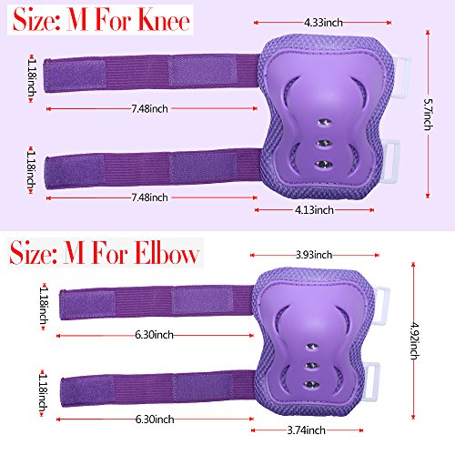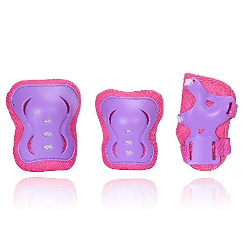 eNilecor Kid's Inline Skating Roller Blading Wrist Elbow Knee Pads Blades Guard Gift for Children's Day, Christmas Pack of 6 (Purple/Pink, M)