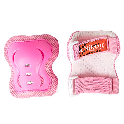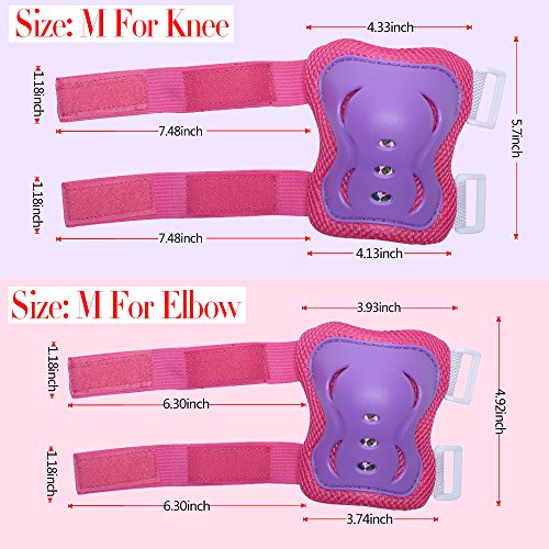 eNilecor Kid's Inline Skating Roller Blading Wrist Elbow Knee Pads Blades Guard Gift for Children's Day, Christmas Pack of 6(M,Pink)