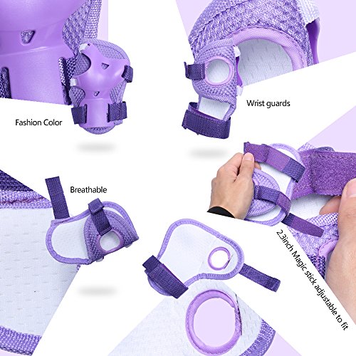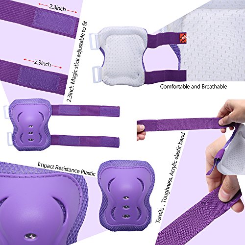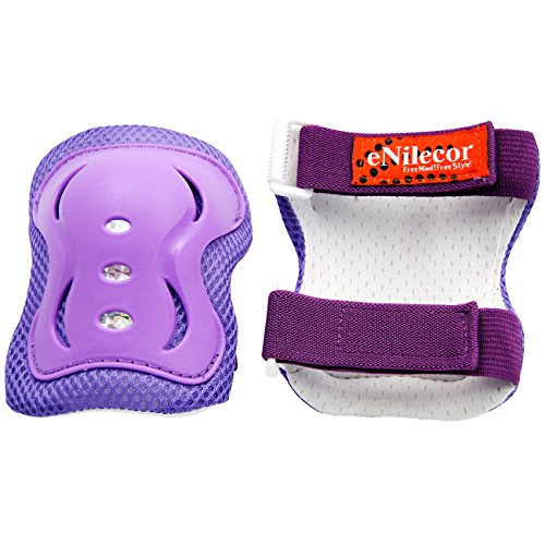 eNilecor Kid's Inline Skating Roller Blading Wrist Elbow Knee Pads Blades Guard Gift for Children's Day, Christmas Pack of 6 (Size: S-Purple)