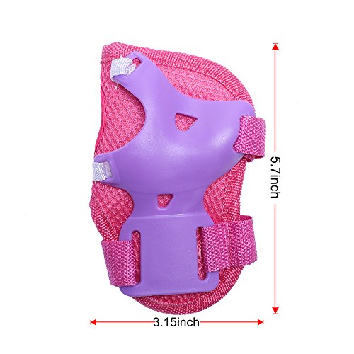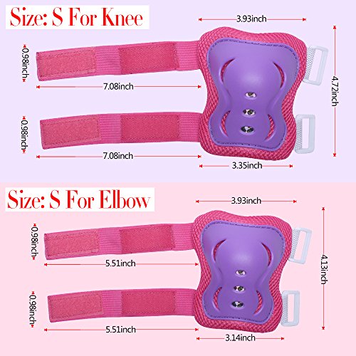 eNilecor Kid's Inline Skating Roller Blading Wrist Elbow Knee Pads Blades Guard Gift for Children's Day, Christmas Pack of 6 (Purple/Pink, S)
