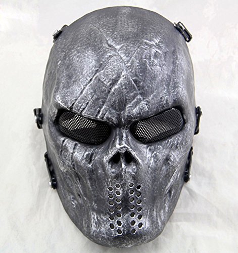 -. Feature : Name: Gmasking Chiefs Evil Punisher Skeleton Airsoft War Game Paintball Mask / Manufacturer Model: GM900A / Material: High Strength Polycarbonate/Acrylonitrile Butadiene Styrene (PC/ABS) / Size: Fits most heads / Details: Eye Protection Constructed of High Grade Wire Mesh to Stop BB Penetration.