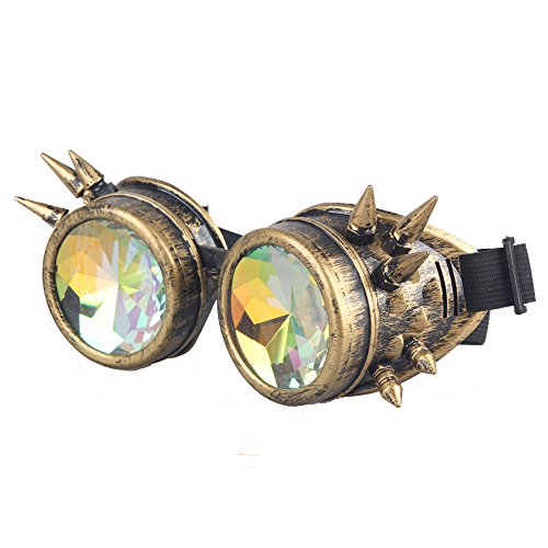 Product Description Brass Spike Kaleidoscope Goggles Extreme Comfort Rubber Pads Real Glass Kaleidoscopic Lenses Rock these glasses anytime you are out and you will be sure to turn some heads. Going to a light show, concert, or music festival? How about a rave? Party? Watching fireworks?! WHATEVER IT IS, purchase a beautiful pair of Kaleidoscope Glasses and stand out in the crowd! Kaleidoscope glasses provide a unique experience to the wearer and can be used for many occasions. Stand out in the crowd with a pair of Noxik Kaleidoscope Glasses. Customers have also claimed to use the lenses for an incredibly psychedelic filter in their photography!