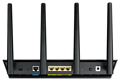 -. Feature : World's first 4x4 MU-MIMO antenna design with AiRadar universal beam forming for unrivaled multi-device performance and wireless signal coverage up to 465 square meters (around 5,000sqft). / Has 1GHz dual-core processor to make Wi-Fi-to-USB transfer speeds up to twice as fast, and can show up to a 50% improvement in total throughput on a heavily-loaded network with multiple clients. / Built-in USB 2.0 and USB 3.0 ports for up to 10-times faster data transfers to USB storage devices, P.R.Inter sharing, and 3G/4G dongle support. / ASUSWRT graphical user interface for easy, CD-free 30-second setup and hassle-free advanced network control. / Protection with Trend Micro with triple-strength total network security, plus robust parental controls and P.R.Ivacy protection. / AiCloud 2.0 lets you access, sync, share and stream your files anywhere, on any internet-connected device.