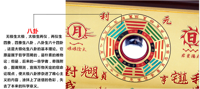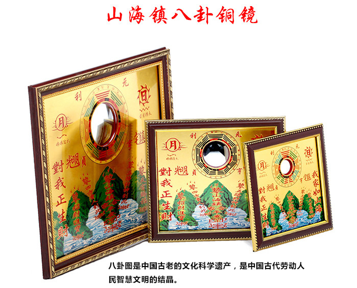 Middle of the painting gossip Tai Chi, north and south of the security of the day and month, the middle of painting Sanshanwuyue, surrounded by all over the world. Aboriginal town has to move mountains discharging into the sea, to completely rule out evil spirits, reversed the effect of yin and yang. So in a very wide application of feng shui defends the face of evil in all its forms has defends effect.